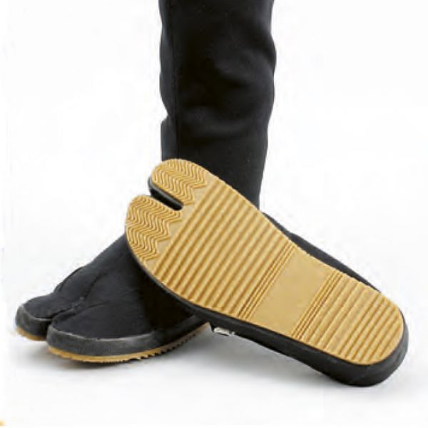 Outdoor-Tabi mit rutschfester profilierter Gummisohle und langem Schaft, ideal zu kombinieren mit unserem Ninja-Anzug.
