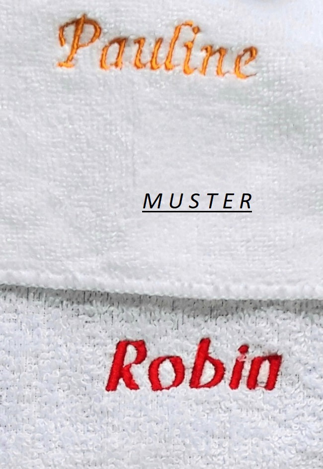 Auf Wunsch besticken wir das Handtuch mit Ihrem Namen. Weitere Motive auf Anfrage.